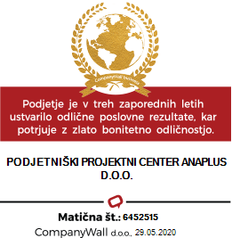 s ponosom vam sporočamo, da smo prejeli Zlato priznanje bonitetne odličnosti zaradi večletnega zglednega poslovanja z vami.